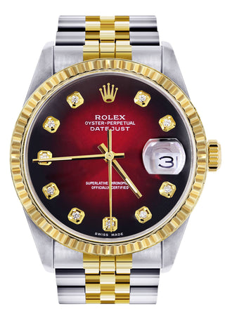 Womens Rolex Datejust Watch 16233 Two Tone | 36Mm | Red Black Dial | Fluted Bezel | Jubilee Band
